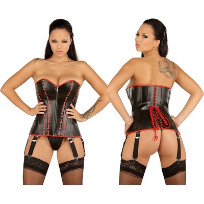 Pevný kožený korzet přes prsa Pevný kožený korzet s lehce tvarovanými košíčky a s řemeny vedoucími přes rozkrok. Korzet má široké, odepínatelné podvazky. Zapínání je vepředu na...