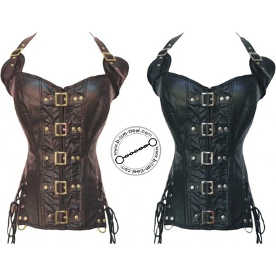 Kožený korzet s pevnými košíčky Kožený korzet s pevnými prsními košíčky, ozdobným kováním a dvojím šněrováním. Vepředu šněrování s kovovými háčky, vzadu šněrování s...
