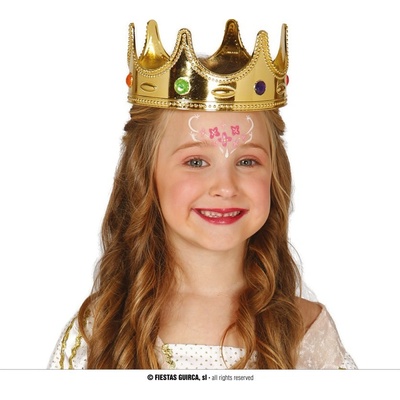 Krásná zlatá koruna, vykládaná barevnými drahokamy pro malého krále nebo královnu Bez zlaté koruny se neobejde žádná královna ani král. Ideální pro oslavu narozenin malých...