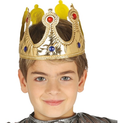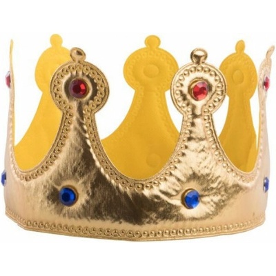 Zlatá královská korunka s kamínky Po obvodu je zevnitř nalepen molitan, pro konfortní nošení, korunka pak dobře drží na hlavě. Obvod: 66 cm Průměr: 20 cm Materiál: 70%...