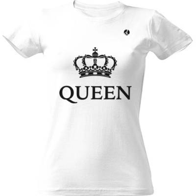 Jednobarevný potisk s královskou korunou a nápisem "Queen" - královna. Módní stylový design pro ženy a dívky na mnoho barevných odstínů textilu.