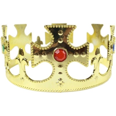 Koruna královská zlatá - hranatá Korunka má zelený, červený a modrý kamínek. Materiál: plast. Nastavitelná velikost. Délka rozepnuté koruny 61cm Cena je uvedena za 1ks
