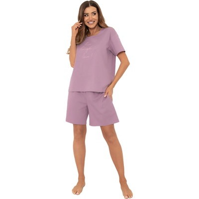100% bavlna Na tričku se nachází ozdobný nápis 'Live, Laugh, Love!' v jemném, ručně psaném písmu, který tvoří decentní akcent. Vřesová barva pyžama podtrhuje ženský a tlumený...