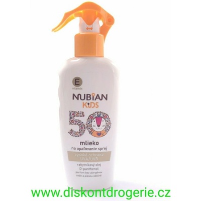 Nubian Kids mléko na opalování SPF 50 ve spreji Chraňte svou pokožku při opalování s Nubian Kids mlékem na opalování SPF 50 ve spreji. vysoká ochrana SPF 50 rakytníkový olej...