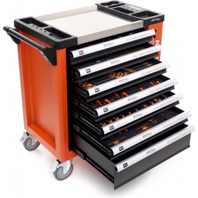 Dílenský vozík s nářadím, sada 258 ks, 7 zásuvek - KRAFT&DELE Dílenská vozík s nářadím KD1067 s boční přihrádkou a nerezovou horní deskou není jen obyčejným úložným prostorem,...