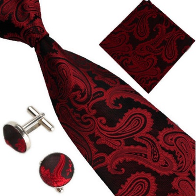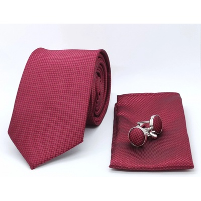 Decofashion sada kravata kapesníček a manžetové knoflíčky vínově červená