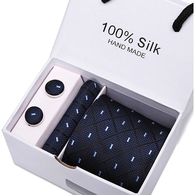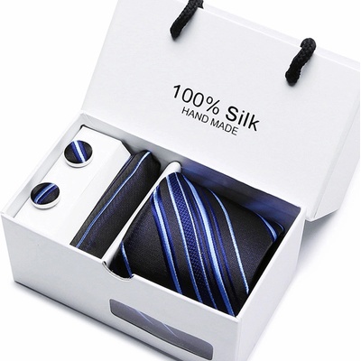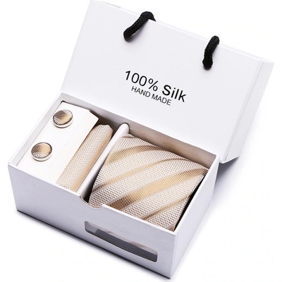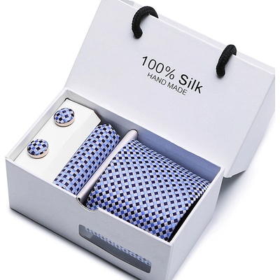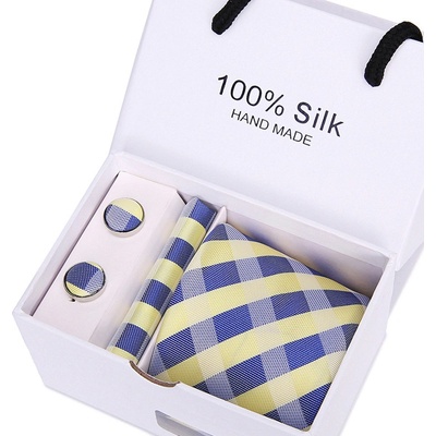 Elegantní pánská souprava obsahuje kravatu, kapesníček, sponu na kravatu a manžetové knoflíčky, vše ve stejném barevném i materiálovém provedení. Kravata je velmi příjemná na...