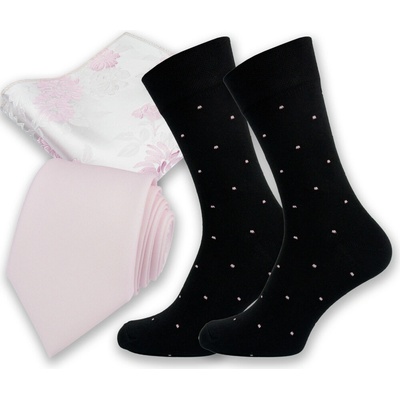 Světlounce růžový pánský set – kravata, kapesníček a ponožky Něžný a elegantní pánský set ve světlounce růžovém odstínu kombinuje jednobarevnou kravatu, bílý kapesníček s...