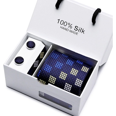 Pánská dárková souprava obsahuje kravatu, kapesníček a manžetové knoflíčky, vše ve stejném barevném i materiálovém provedení. Kravata je velmi příjemná na dotek, dělá dobrý...
