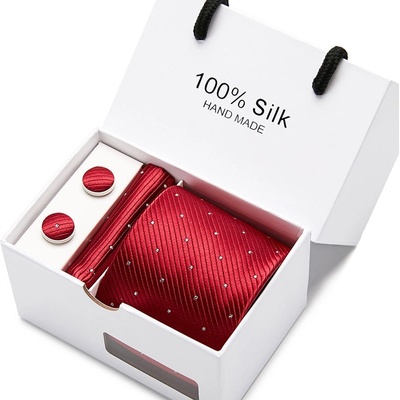 Vínově červený pánský set – kravata, kapesníček a manžetové knoflíčky Stylový pánský set spojuje vínově červenou kravatu v elegantním matném provedení s bavlněnými doplňky v...