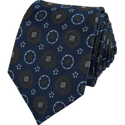 Tmavě modrá pánská hedvábná kravata s hnědým vzorem Stylová a nadčasová kombinace! Tato tmavě modrá kravata z pravého hedvábí je doplněna decentním hnědým vzorem, který působí...