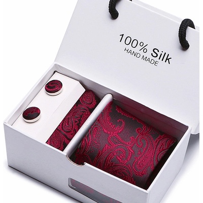 Elegantní pánská souprava obsahuje kravatu, kapesníček, sponu na kravatu a manžetové knoflíčky, vše ve stejném barevném i materiálovém provedení. Kravata je velmi příjemná na...
