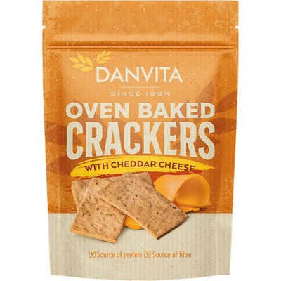 Danvita Křehké pšeničné krekry se sýrem čedar a semínky 100 g. Křehké pšeničné krekry se sýrem čedar a semínky 100 g nabízejí dokonale vyváženou kombinaci plné chuti sýra čedar...