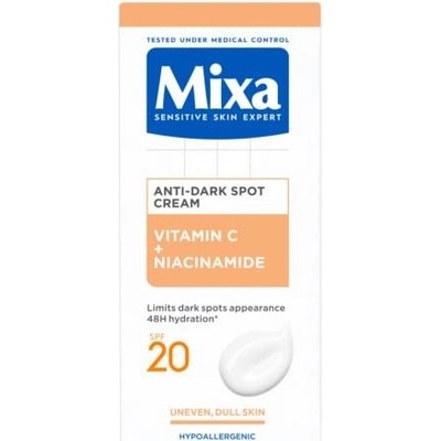 Mixa Vitamin C + Niacinamide Anti-Dark Spot Cream. Pozorujete na své pleti tmavé skvrny? Zbavte se jich díky dennímu krému Mixa Vitamin C + Niacinamide Anti-Dark Spot Cream...