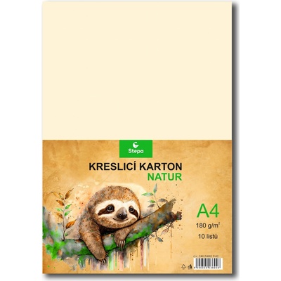 Kreslicí karton - natur (nebělený, bělost papíru 85%) Levnější varianta k běžnému bělenému kartonu. Vhodný pro výtvarné techniky, kde je žádoucí efekt starého (rustikálního) vzhledu. Formát: A4 (210 x 297 mm) Počet listů v balení: 10 Gramáž papíru: 180g