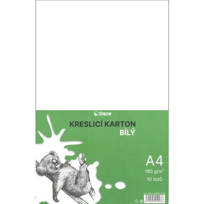 Kreslicí karton A4/10/180 g - bílý Kreslicí karton bílý (tzv. "čtvrtky") pro všechny, kteří rádi malují a vystřihují. Široké využití ve školách, školkách, domácnostech i kancelářích, jsou vhodné pro malování vodovkami, temperovými barvami, apod. Formát A4 (297 x 210...