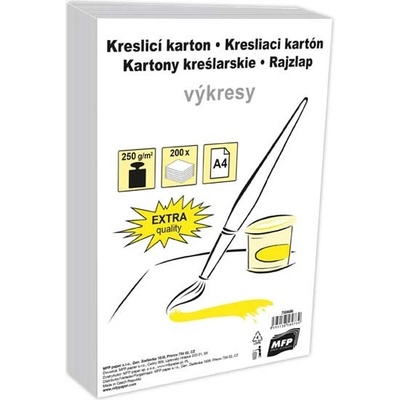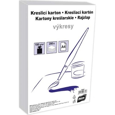 Kreslicí karton (čtvrtka) velikosti A4, papír 180 g/m2. Rozměr 210 mm x 297 mm, balení obsahuje 200 listů.