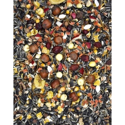 SLOŽENÍ: Kukuřičné vločky, ovesné vločky, hrachové vločky, slunečnice černá-žíhaná, chléb svatojánský, oves nahý, kukuříce žlutá-růžová-popcorn-červená -černá, hrách...