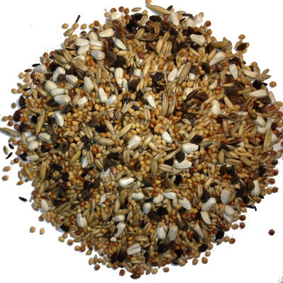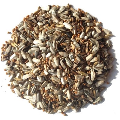 Složení: proso žluté 39%, kanárské semeno 13,5%, oves loupaný 6%, pšeničný holub 6%, lněné semínko 5%, světlice barvířská 5%, proso červená 5%, proso bílé 5%, pohanka 4%, dari...