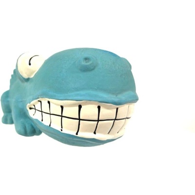 Huhubamboo latexový pískací krokodýl v modré barvě o délce 19 cm, s integrovaným pískátkem. Materiál: latex.
