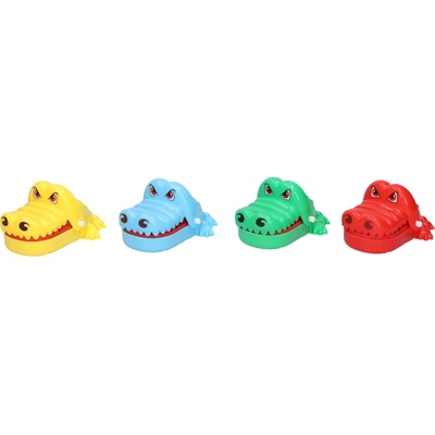 Kousající krokodýl hra 11 cm. Mačkáním zubů v otevřené krokodýlově tlamě se tlama při zmáčknutí náhodného zubu zavře. Rozměry 11x7,5x5,5cm. 4 barevné varianty - modrá, zelená,...