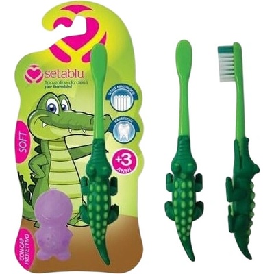 Má jemné štětinky vhodné pro citlivé dětské dásně a zuby. Ergonomická rukojeť usnadňuje malým rukám správné držení kartáčku. Veselý design s motivem krokodýla a praktická...