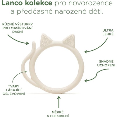 Kousátko je ideální pro děti, kterým se právě prořezávají první zoubky. Jedinečná vůně a chuť přírodní gumy je u dětí velmi oblíbená. Měkčí i tvrdší části a výstupky kousátka...