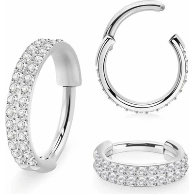 Luxusní kroužkový piercing do nosu s dvojitou řadou krystalů – elegantní šperk z oceli Tento kroužek je vyroben z kvalitní chirurgické oceli a otevírá se jednoduchým pohybem:...