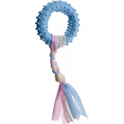 Hračky JK ANIMALS kroužek s uzlem, 7 cm : odolná hračka z termoplastické pryže pro psy, TPR hračka s bavlněným uzlem, s malými výstupky pro masáž dásní, průměr 7...
