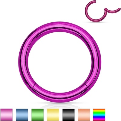 Ocelový piercing do nosu nebo ucha v podobě uzavíratelného kruhu, anodizovaný titanem.