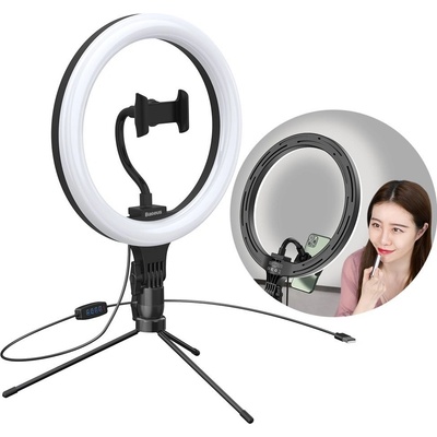 Baseus mini Tripod stojan s kruhovým světlem pro natáčení černý (Ring light 10") Baseus Tripod s kruhovitým LED světlem pro natáčení videí, focení selfie, líčení apod. Nabízí 3...