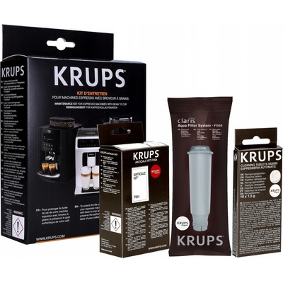 Krups XS530010 čistící sada - čistící sada pro kávovary řady EA a XP. Sada obsahuje 1ks filtrační patrona, 2ks odvápňovacích sáčku a balení 10ks čistících tablet