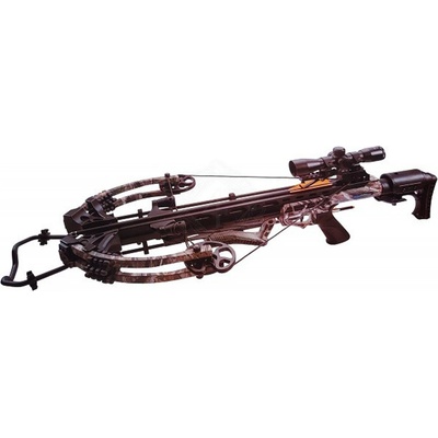 Sportovní lovecká kladková kuše s velkou napínací silou 200 LB. Povrchová úprava forest camo lučiště a těla kuše doplněné o černou posuvnou pažbu. Díky takto silným ramenům a...