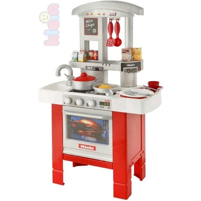 Dětská plastová kuchyňka Miele, v červenobílém provedení, se zvuky. Kuchyňka má z jedné strany troubu na pečení a z druhé strany myčku na nádobí. Ke kuchyňce patří spousta...