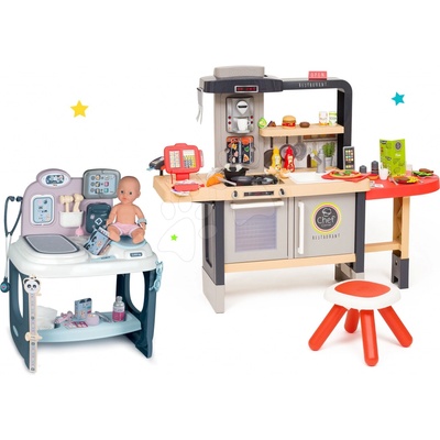 Restaurace s elektronickou kuchyňkou a zdravotnický pult s panenkou se zvukem a světlem od francouzského Smoby je tím nejkrásnějším dárkem pro všechny chlapce a dívky již od 3...