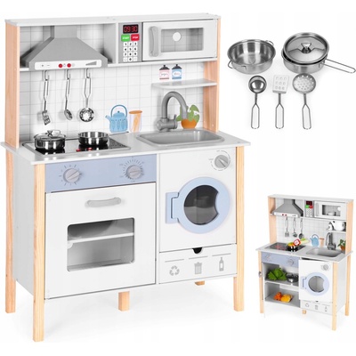 Dětská kuchyňka, LED zvuky, trouba, pračka, kuchyňské doplňky ECOTOYS 5905817006342 DŘEVĚNÁ KUCHYŇKA PRO DĚTI - Pro děti od 3 let - Stabilní konstrukce z MDF - Trouba, dřez,...