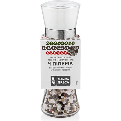 100% Přírodní hrubá mořská sůl ze solných jezer v Messolonghi se čtyřmi druhy pepře. V oblasti Messolonghi mají jednu z největších solných pánví v Řecku a jednu z největších v...