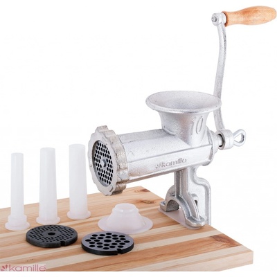 Litinový mlýnek na maso ve stříbrné barvě je ideálním pomocníkem v každé kuchyni. Snadno umelete různé druhy mas, ale poradí si i s rybami či zeleninou.