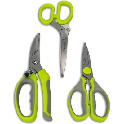 Materiál: nerezová ocel délka: 21 cm černé rukojeti ze syntetického, protiskluzového materiálu rozkládací mechanismus, který umožňuje nůžky rozložit na dva kusy a vše snadno...