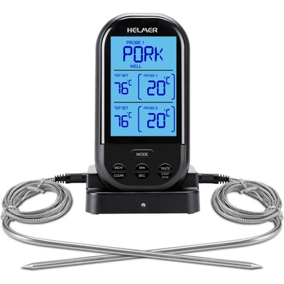 Bezdrátový teploměr se sondou, využijete při pečení, grilování, uzení, vaření ve vodě, vaření v pomalém hrnci. Přednastavené doporučení propečení těchto druhů masa: hovězí,...