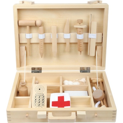 Dřevěná lékárnička plná zdravotnického vybavení pro každého malého lékaře! Stylová dřevěná lékárnička plná zdravotnického vybavení bude bavit každého malého lékaře....