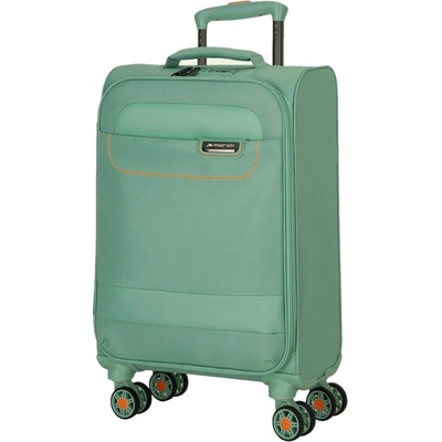 Cestovní textilní menší kufr z extrémně lehkého materiálu holandské značky March v zajímavé šalvějové barvě s oranžovými detaily. Nová technologie odlehčeného materiálu Vám...