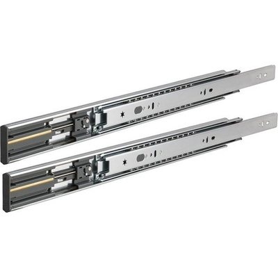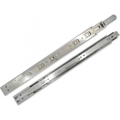 Nábytkový kuličkový plnovýsuv na zásuvku s dotahem. Vlastnosti: Kód: 054105 Povrchová úprava: stříbrný zinek Délka: 500 mm Nosnost: 45kg