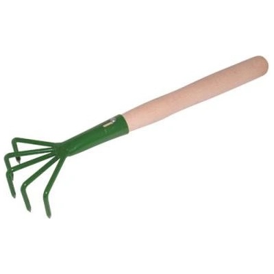 Lehký a odolný kovový drápek s dřevěnou násadou. Vhodný pro běžné práce na zahrádce. Český výrobek. Počet hrotů: 5 Délka násady: 25 cm