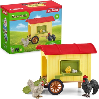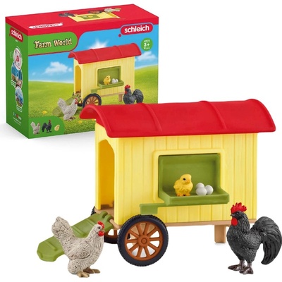 SCHLEICH 42572 5v1 Přenosný KURNÍK kohout slepice sada figurek zábava Schleich 42572 Přenosný kurník Kukuryk! Kohout už nespí. Po klidné noci v kurníku Schleich® FARM WORLD...