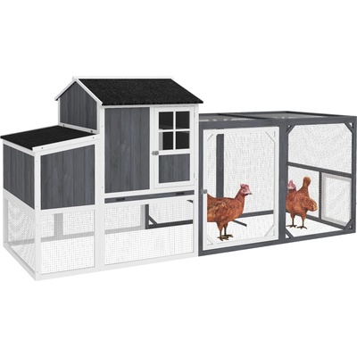 Kurník pro slepice PAWHUT D51-092GY Dřevěný kurník pro 2-4 slepice, z borovicového dřeva, snáškové hnízdo se 2 oddíly, uzamykatelné dveře, vodotěsná střecha odolná před UV...
