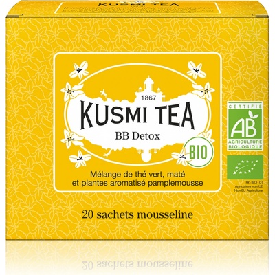 Kusmi Tea Organic BB Detox je oblíbená detoxikační směs zeleného čaje, maté a bylin s vůní grapefruitu, v BIO kvalitě.
