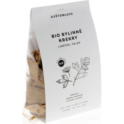 KVĚTOMLUVA BIO BYLINNÉ KREKRY AIP - LIBEČEK, CELER Vyvinuto ve spolupráci s Lucií Podolovou (Lucky AIP), certifikovanou AIP koučkou. Ruční výroba, velmi kvalitní suroviny. Potěší při cestách, svačině, nebo i při posezení s přáteli překvapí originální výbornou chutí....