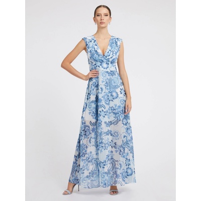 Dámské modré šaty s květinovým vzorem od Guess.Šaty mají na zadním díle zapínání na zip a šňůrku na zavazování.Materiál:100% polyester