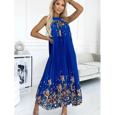 Denní šaty model 182483 Numoco universal modrý Saténové plisované maxi šaty se symetrickým květinovým vzorem. Šaty jsou v chrpové barvě s květy. Šaty jsou ideální na léto....